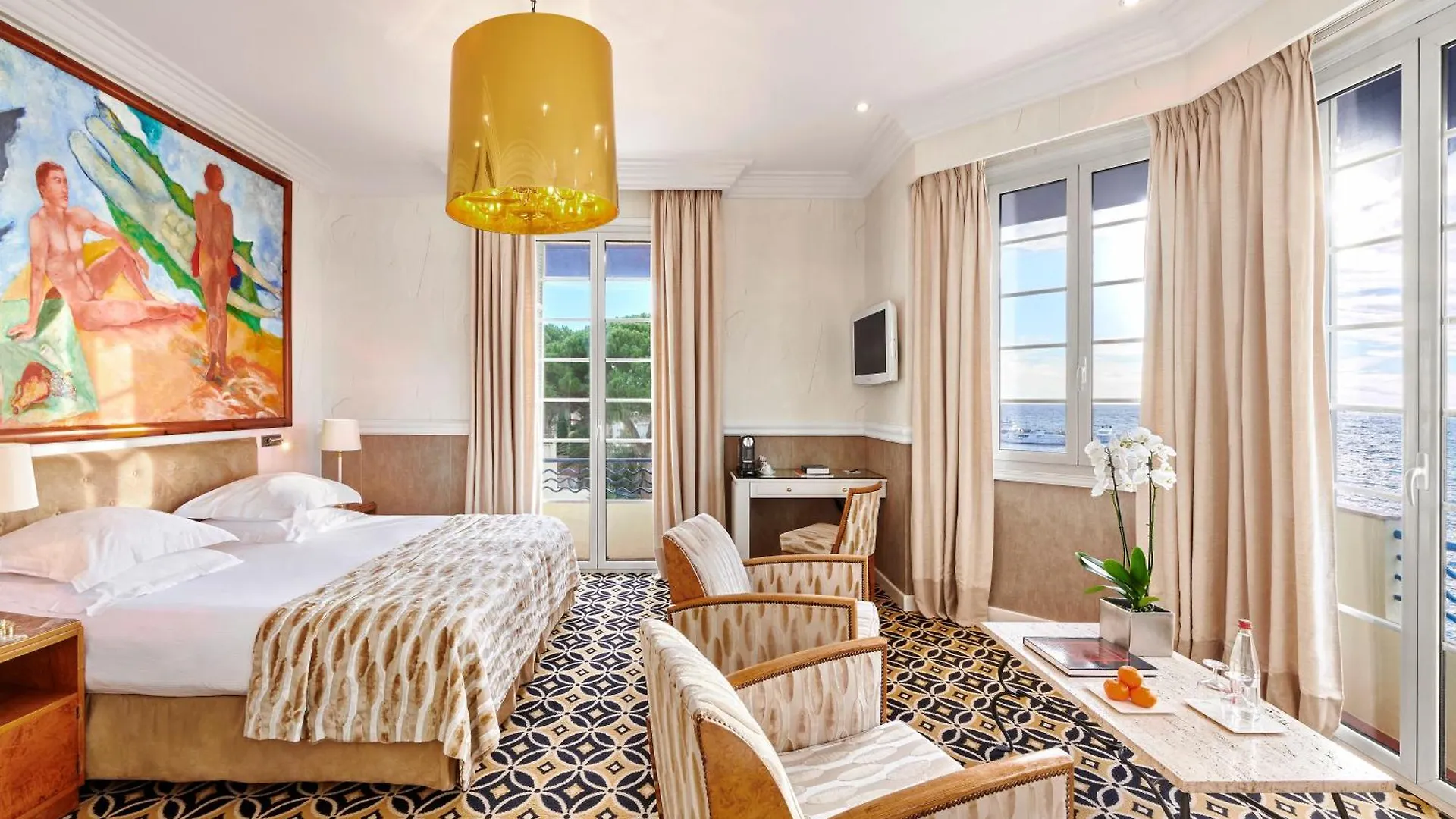 After a tiring day have a rest on an a furnished balcony featured in your room. The units of Cap D'Antibes Beach Hotel look out over Esterel Mountains.